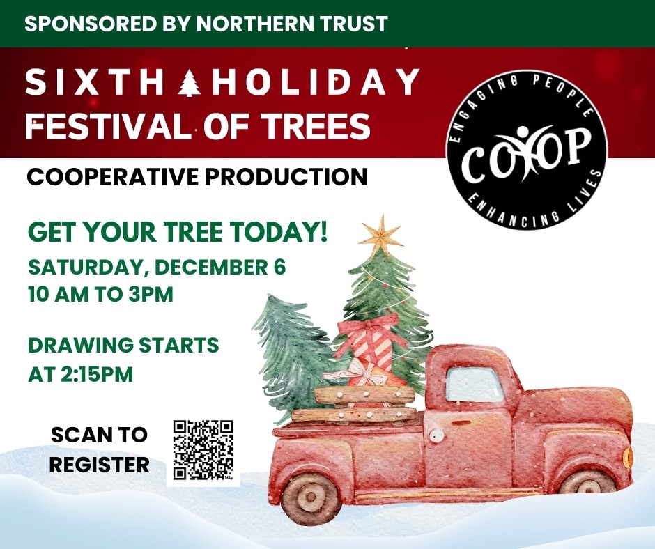 Join the fun at our SIXTH ANNUAL FESTIVAL OF TREES sponsored by NORTHERN TRUST! Decorate a tree, give it a catchy name, and include a $100 gift under or attached to it. Raffle tickets are drawn at the event for chances to win. All proceeds support accessibility items and enrichment activities for the people we…